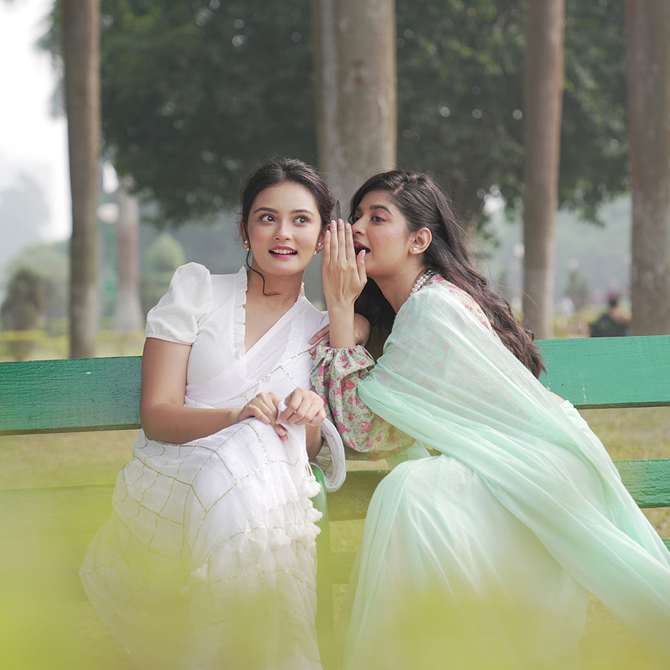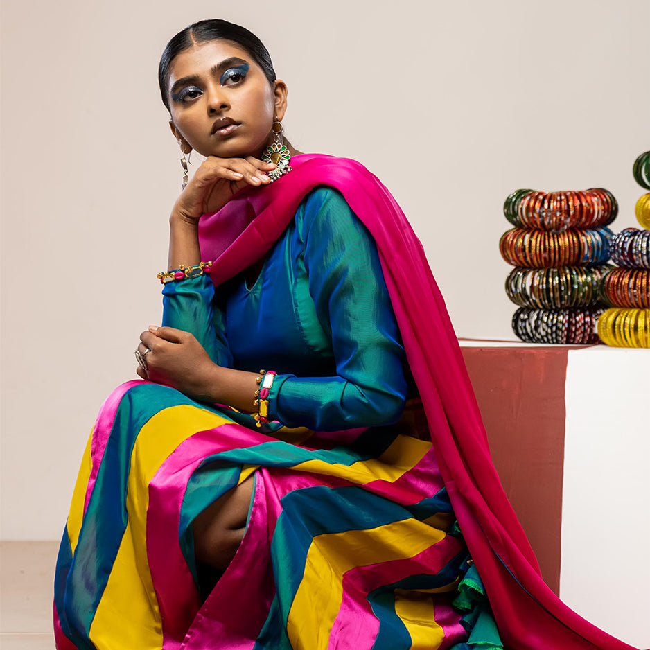 A festival of fabric, a celebration of soul. Where pinwheels twirl with embroidered blouses, and lemon candy stripes flirt with dusky coral sarees.